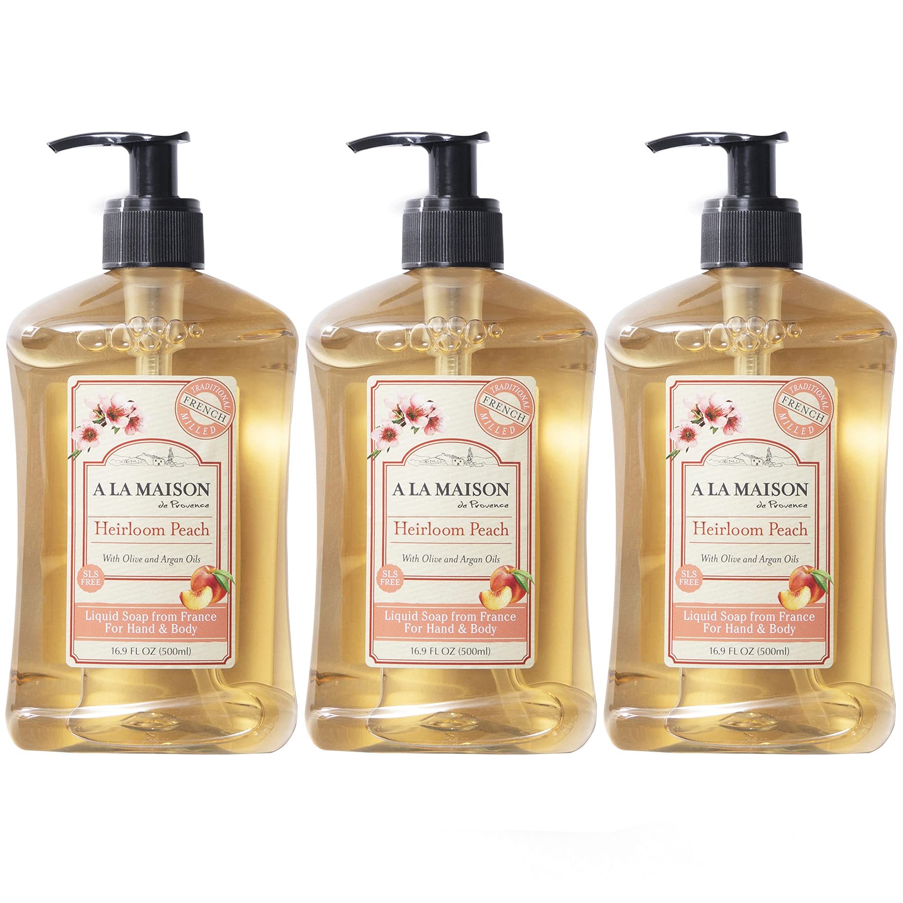A LA MAISON Liquid Soap, Heirloom Peach - Uses: Hand and Body, Triple Milled, Essential Oils, Biodegradable, Plant Based, Vegan, Cruelty-Free, Alcohol & Paraben Free (16.9 oz, 3 Pack)