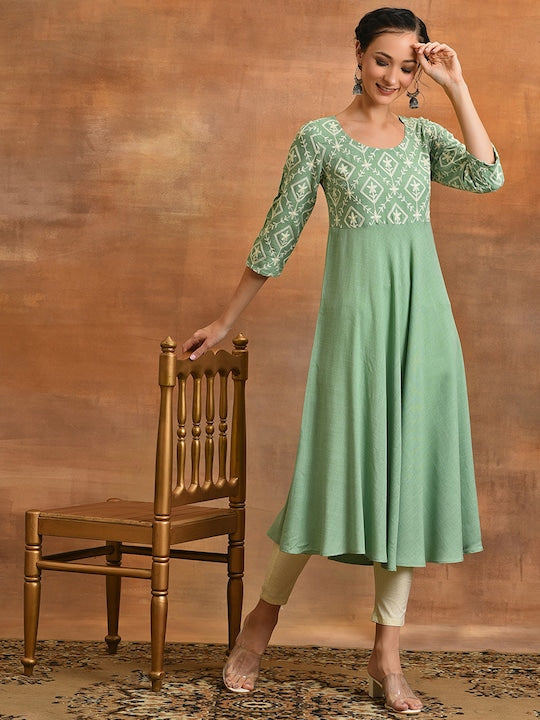 AKS Couture Geometric Yoke Design Embroidered Thread Work Anarkali Kurta