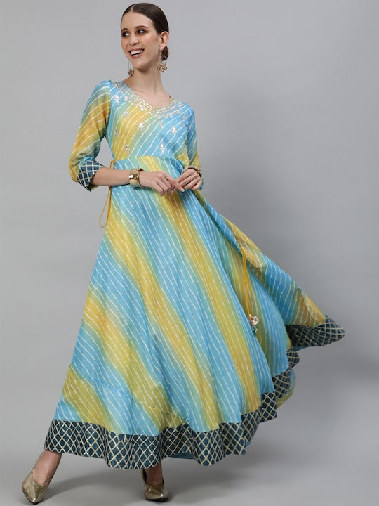 AKS Couture Striped Embellished Maxi Dress