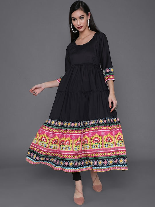 AKS Ethnic Motifs Printed Round Neck Tiered Anarkali Kurta