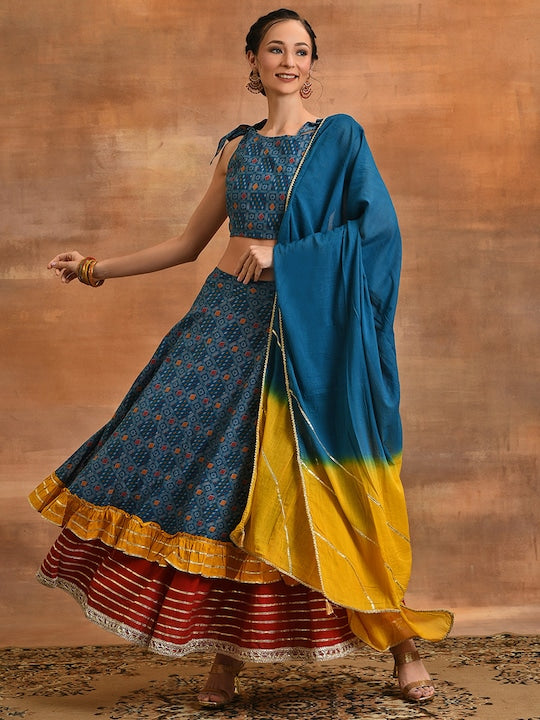 AKS Printed Ready to Wear Lehenga & Blouse With Dupatta