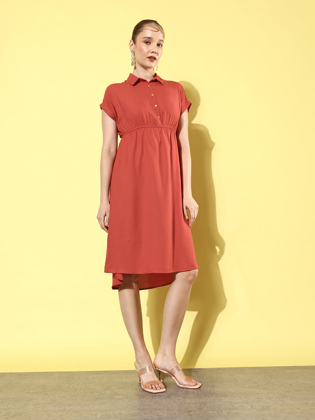All about you Dusky Rust Shirt Collar Extended Sleeves Lace Stories Fit & Flare Dress