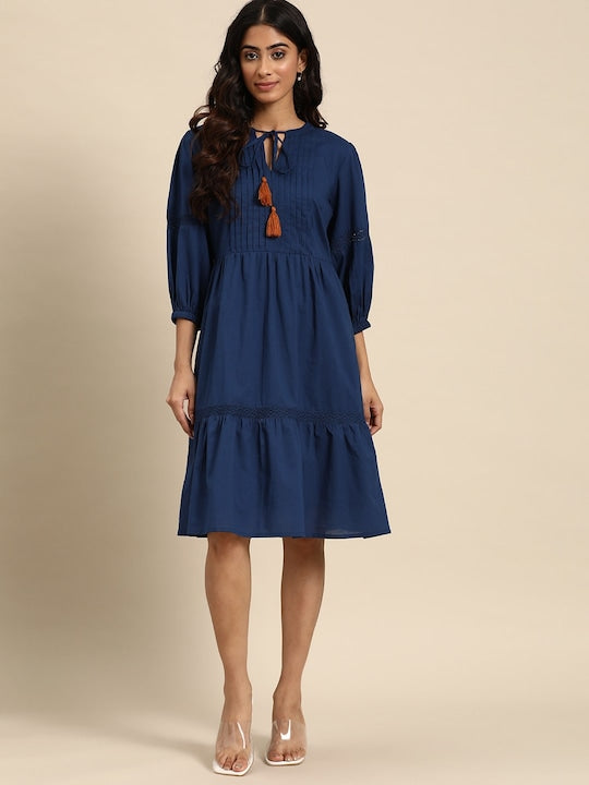 All about you Tie-Up Neck Pure Cotton A-Line Dress