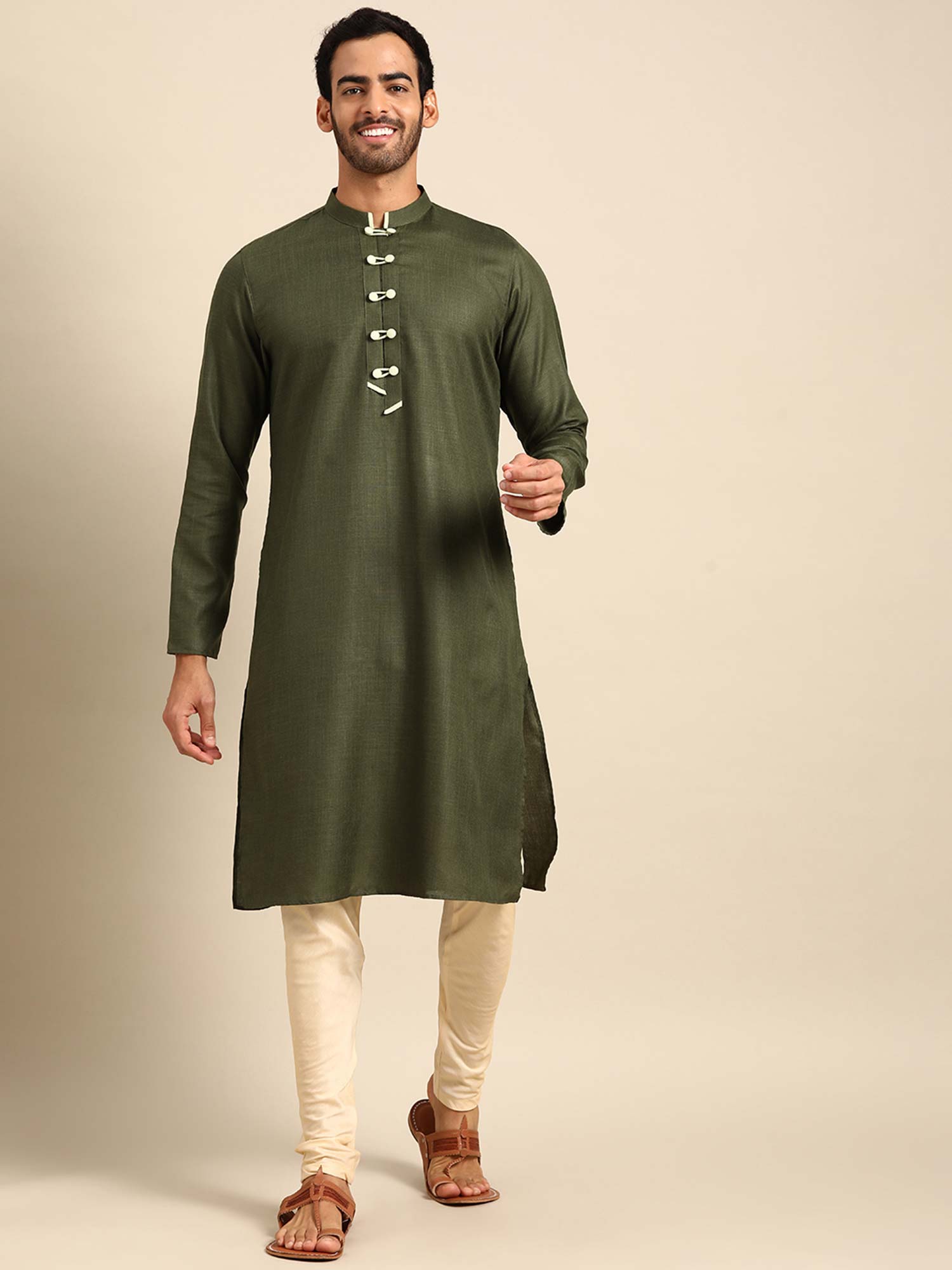 - Material: Made from a comfortable Cotton Blend, this olive kurta set is ideal for festive occasions.