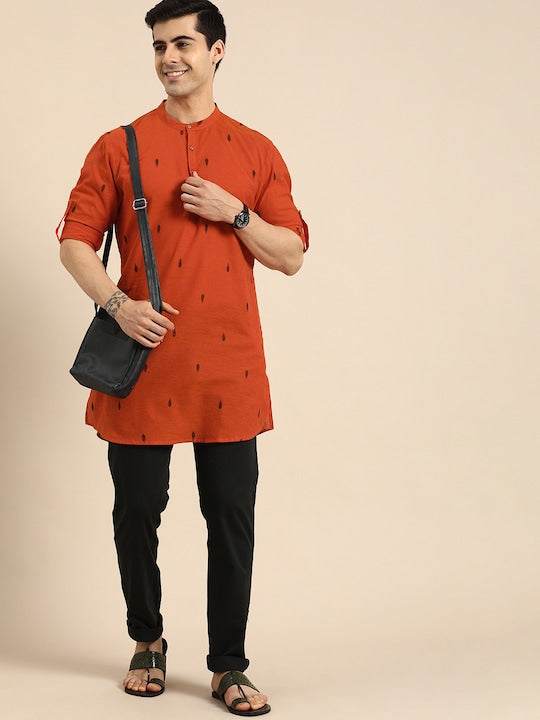 Anouk Men Orange & Black Ethnic Motifs Kurta