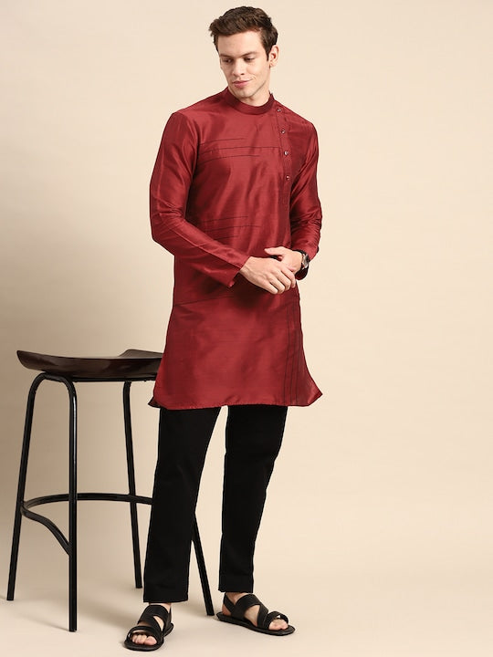 Anouk Men Red Geometric Embroidered Cotton Silk Kurta