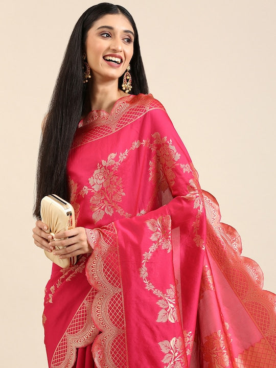 Anouk Pink Woven Design Pure Silk Banarasi Saree