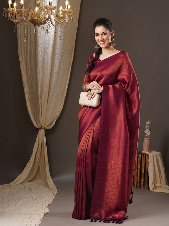 - Purple and gold-toned kanjeevaram saree