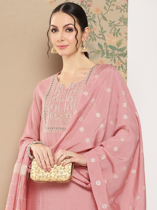 Anubhutee Women Ethnic Motifs Yoke Design Regular Kurta with Trousers & With Dupatta