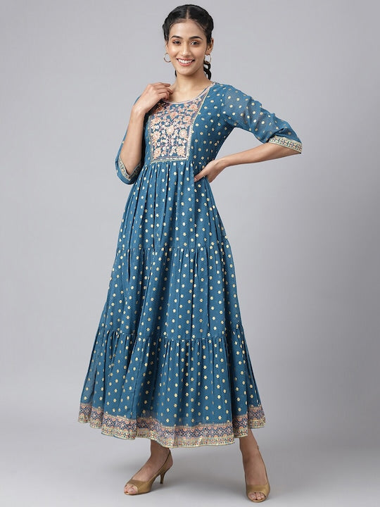 Aurelia Blue Ethnic Motifs Maxi Dress