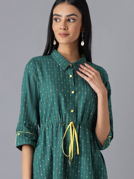 Aurelia Green Printed Pure Cotton A-Line Dress