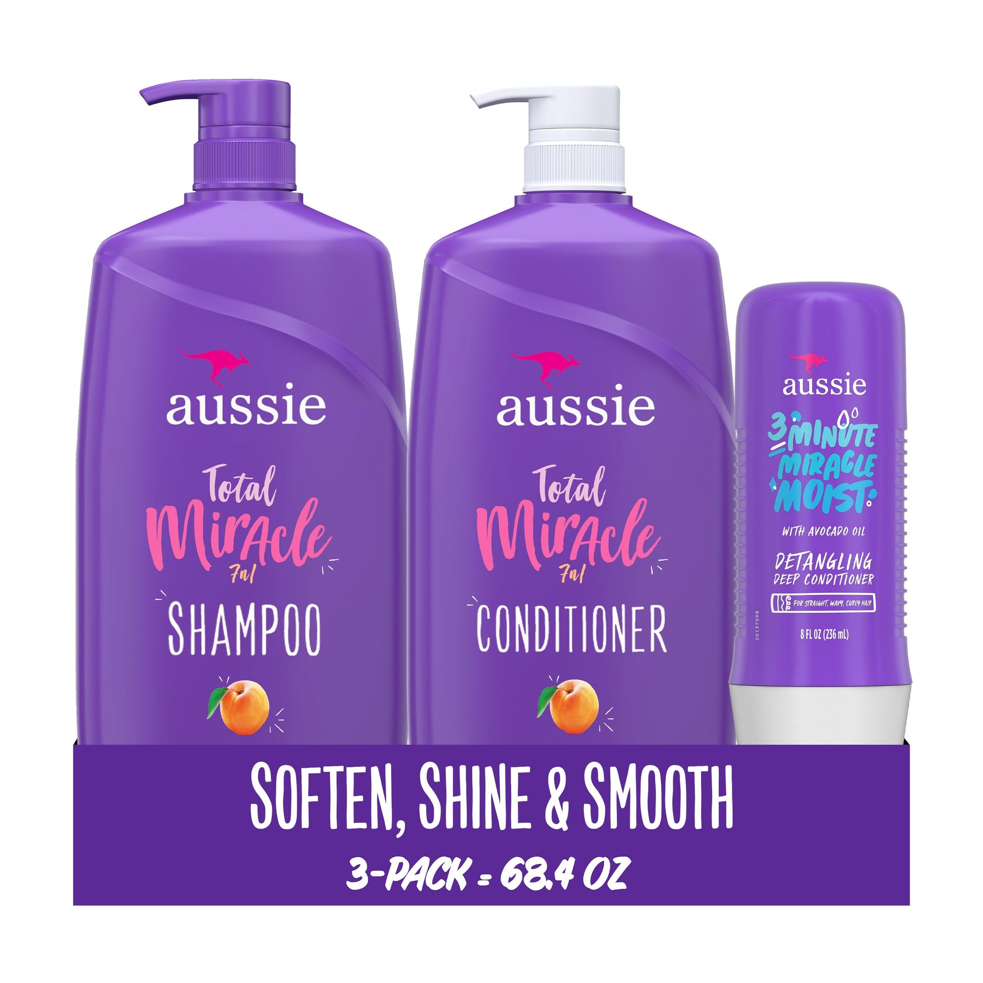 Aussie Total Miracle Hair Care Bundle: Shampoo and Conditioner with 3 Minute Deep Conditioner Treatment, Apricot & Macadamia Oil, Paraben-Free, for Damaged Hair, 26.2 Fl Oz & 8 Fl Oz, 3 Pieces
