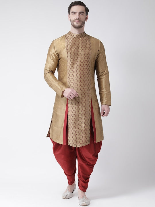 Deyann Men Brown & Maroon Woven Design Kurta with Dhoti Pants