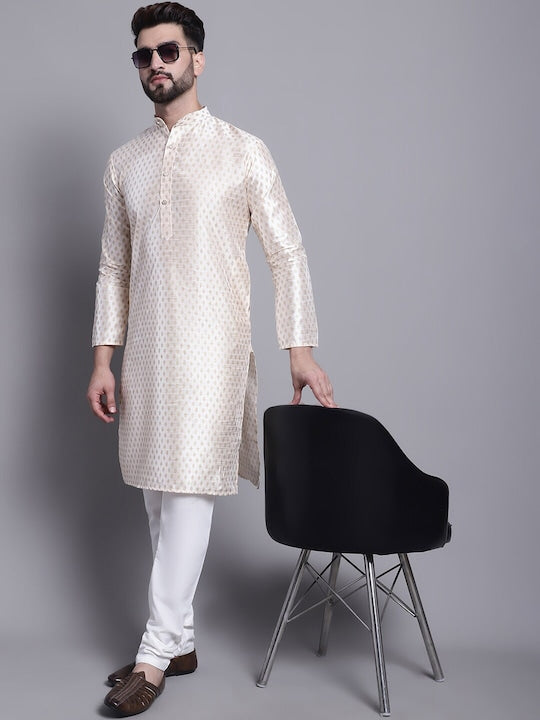 - Cream-coloured, gold-toned & white Kurta with Churidar
