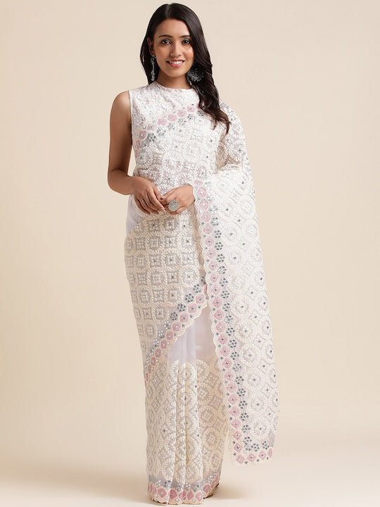 Fabmora Ethnic Motifs Embroidered Organza Saree