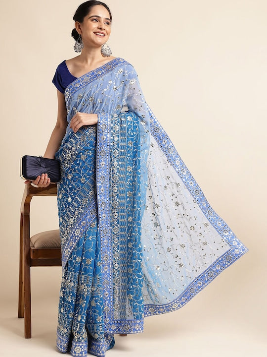Fabmora Ethnic Motifs Sequinned Pure Georgette Saree