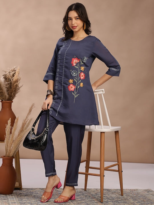 - Blue embroidered Kurta with Trousers