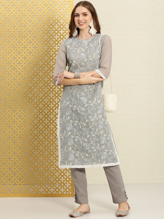 House of Pataudi Ethnic Motifs Embroidered And Checked Thread Work Jashn Kurta