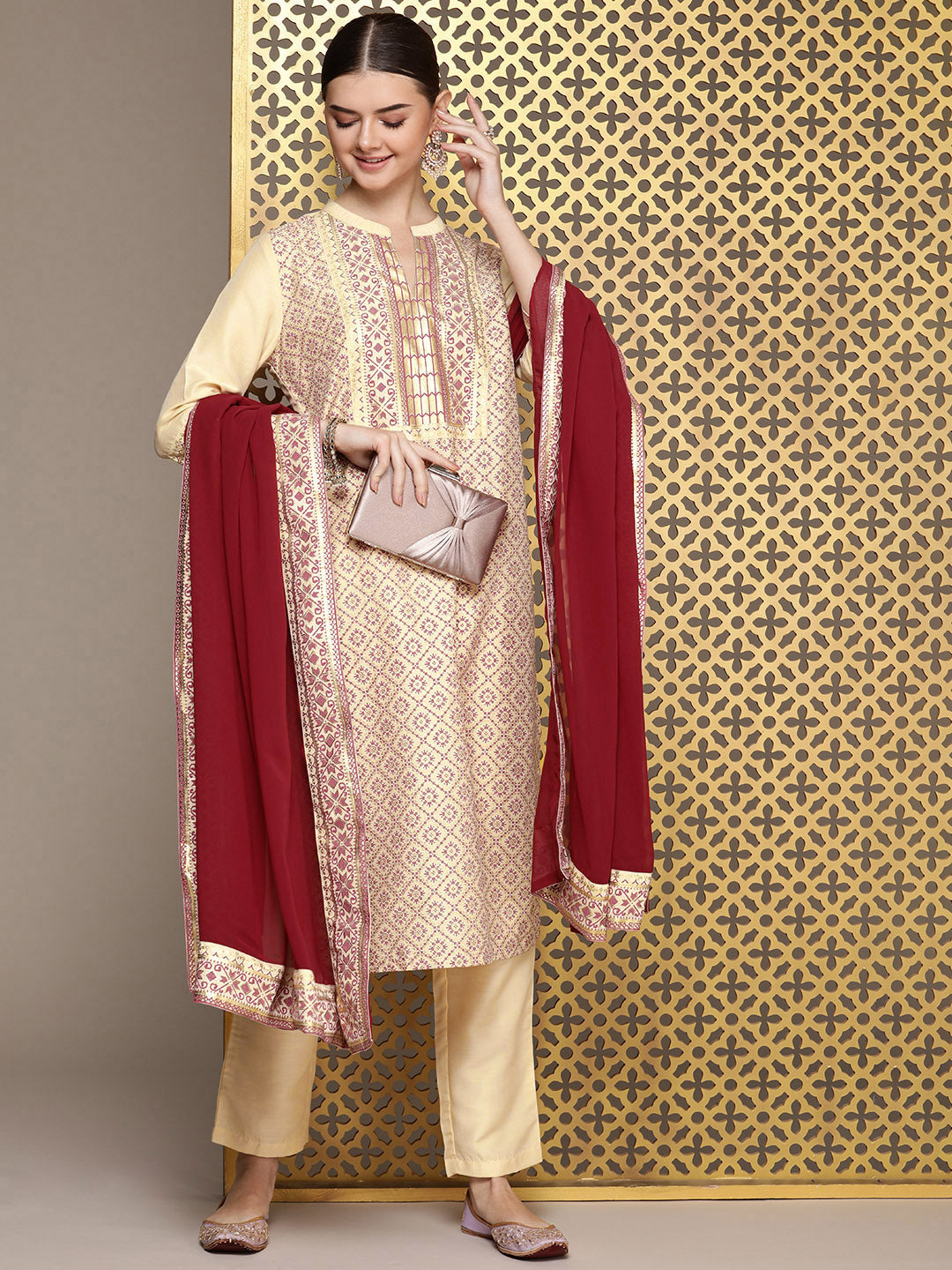 House of Pataudi Jashn Ethnic Motifs Printed Kurta with Trousers & Dupatta