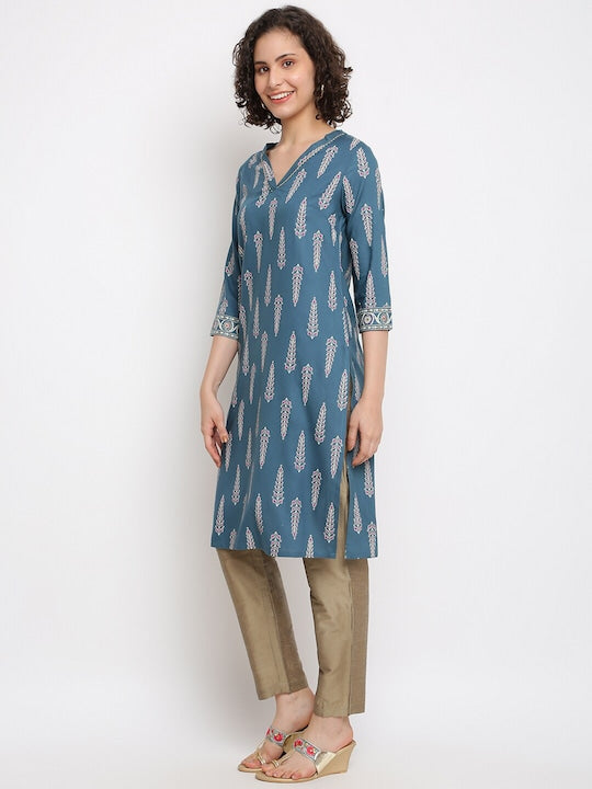 - The A-line shaped kurta features a V-neck and three-quarter regular sleeves, blending a classic silhouette with contemporary style.