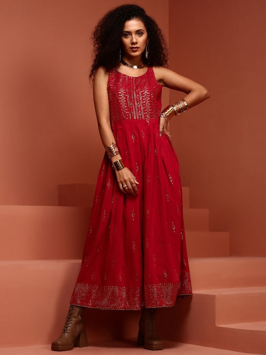 - Make a bold statement with our Black and gold-toned printed basic jumpsuit, a versatile and chic choice for ethnic occasions. This jumpsuit features a classic round neck, sleeveless design, and 2 functional pockets, seamlessly combining style and convenience.