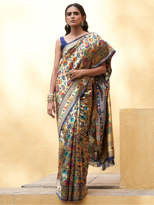 Janasya Floral Zari Silk Blend Paithani Saree