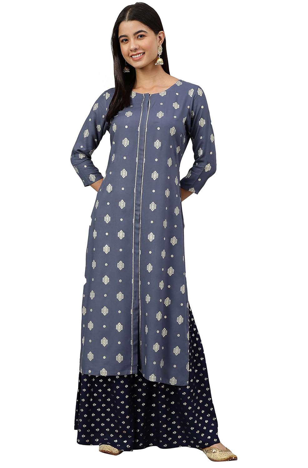 Janasya Women's Grey Rayon Ethnic Motifs Straight Kurta