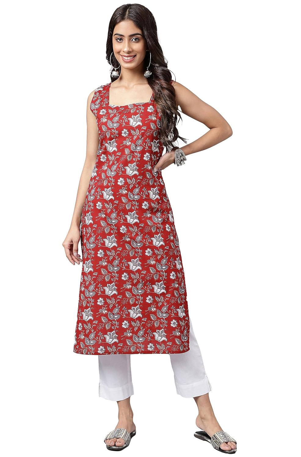 - Crafted from comfortable Cotton fabric, this straight-cut kurta offers a regular fit and sleeveless design, perfect for casual occasions. Its 44-inch length adds to its versatility.