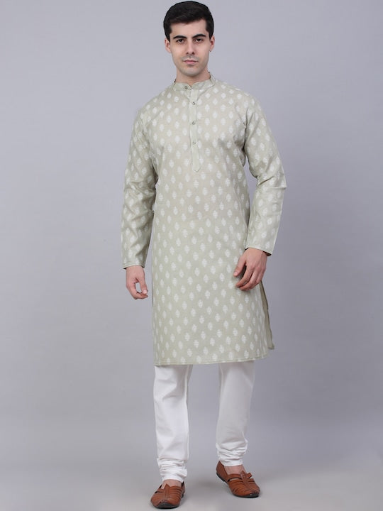 Jompers Men Grey Floral Printed Kurta with Churidar