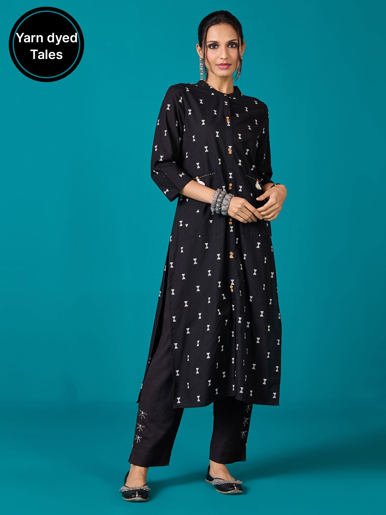 - Elevate your casual wardrobe with this Yarn Dyed Cotton Kurta featuring a unique blend of two prints, ideal for both casual and office wear. The kurta is crafted from yarn-dyed cotton, offering long-lasting, vibrant colors, a unique texture, and breathability for comfort.