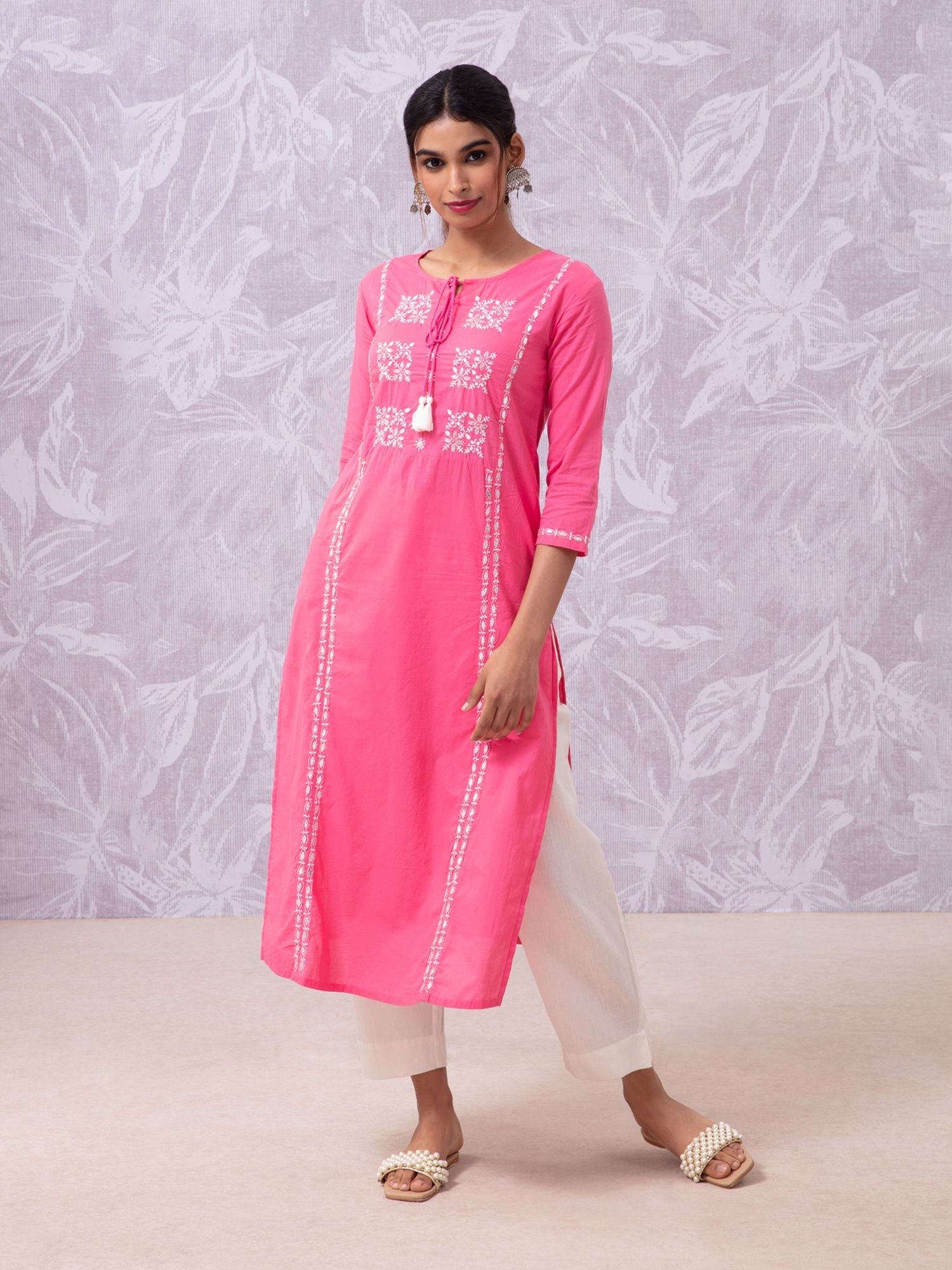 Likha Chikankari Pink Hand Embroidered Straight Kurta LIKKUR120