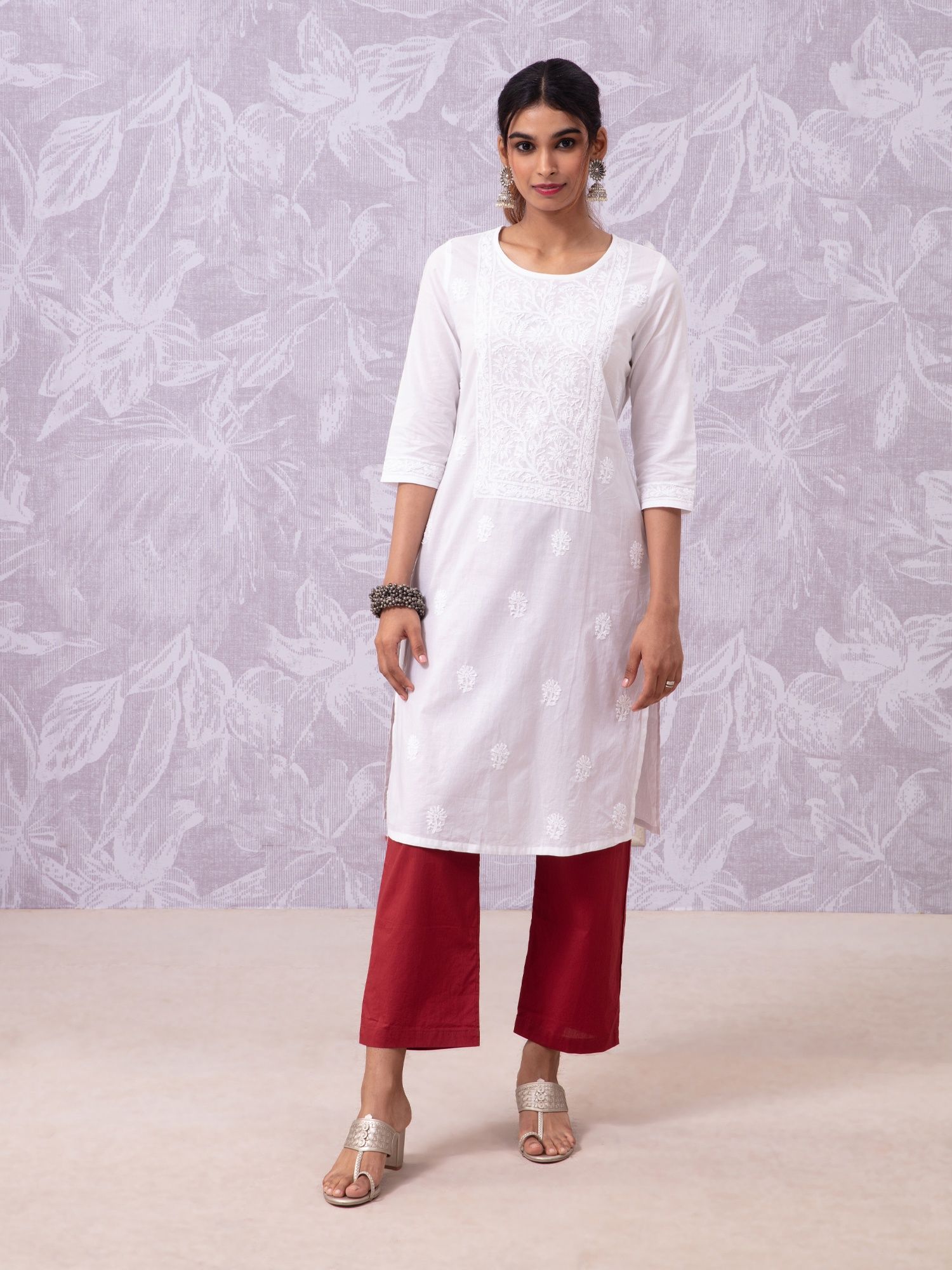 Likha Chikankari White Hand Embroidered Straight Kurta LIKKUR117