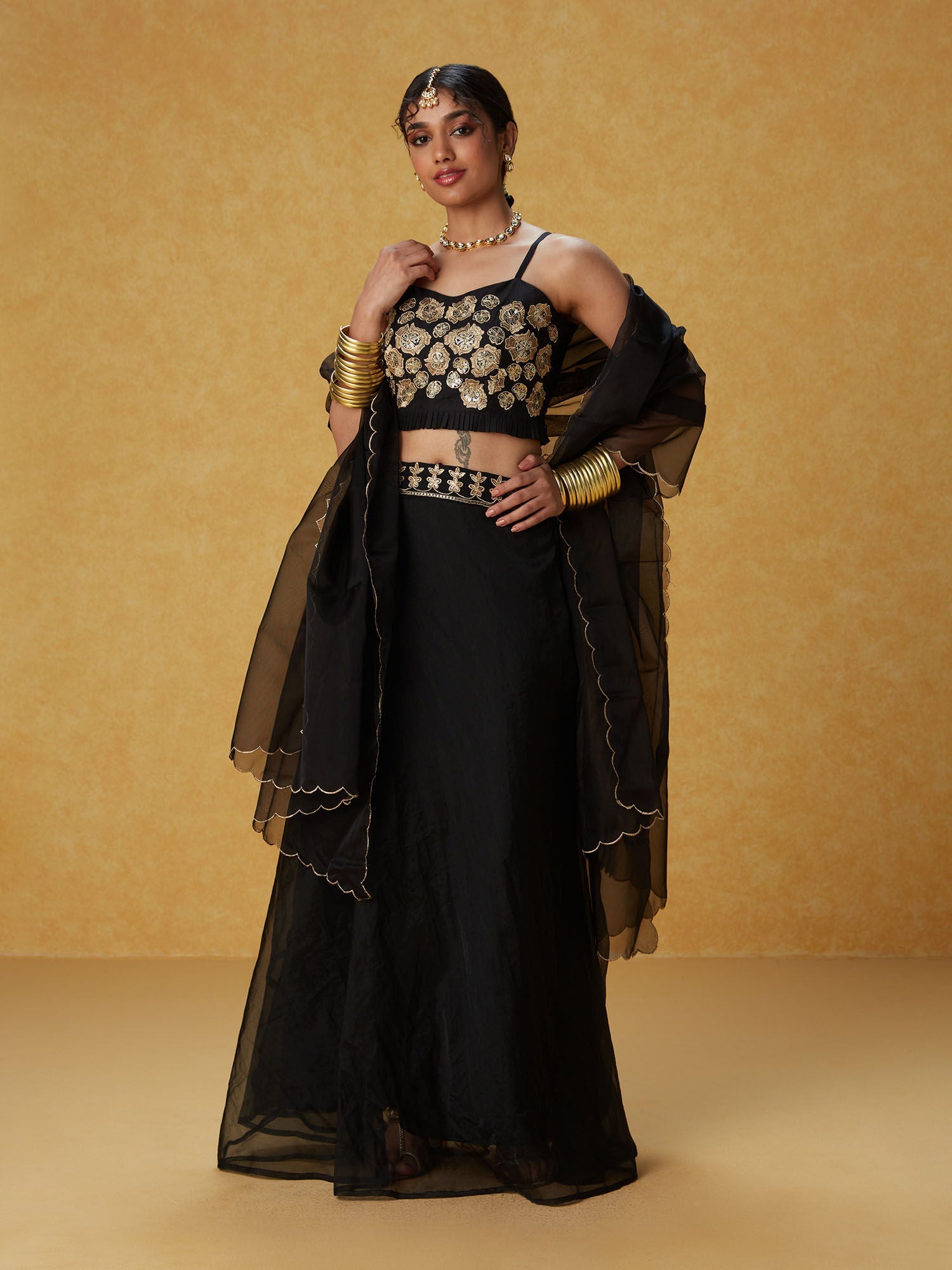 Likha Ghoomar Black Embroidered Lehenga Choli with Dupatta LIKLEH16 (Set of 3)