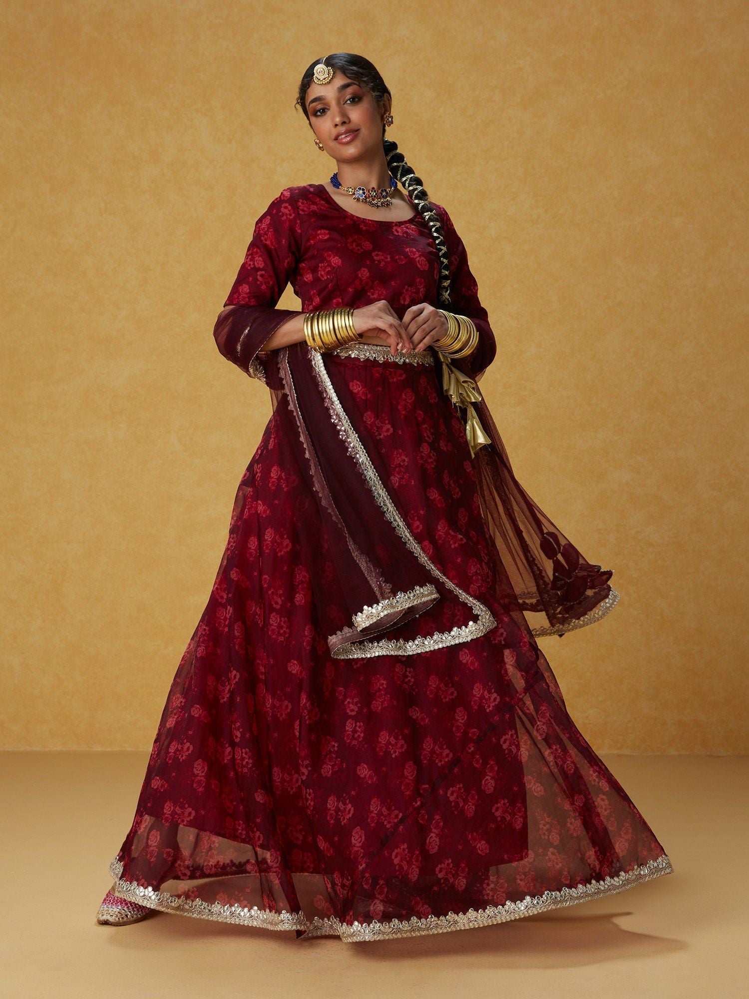 Likha Ghoomar Maroon Floral Printed Lehenga Choli with Dupatta LIKLEH21 (Set of 3)