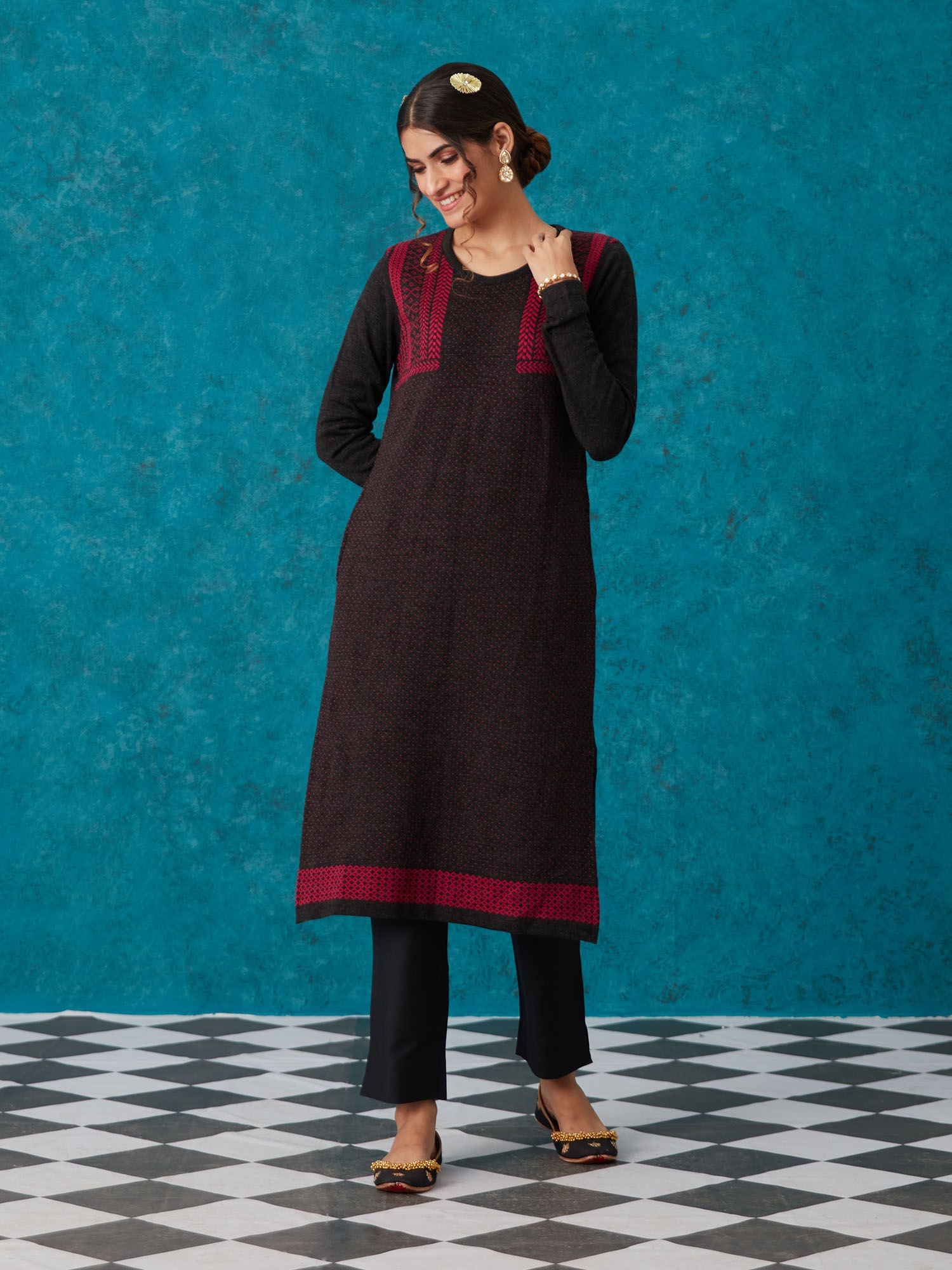 Likha Grey Woollen Acrylic Jacquard Winter Kurta LIKKUR151