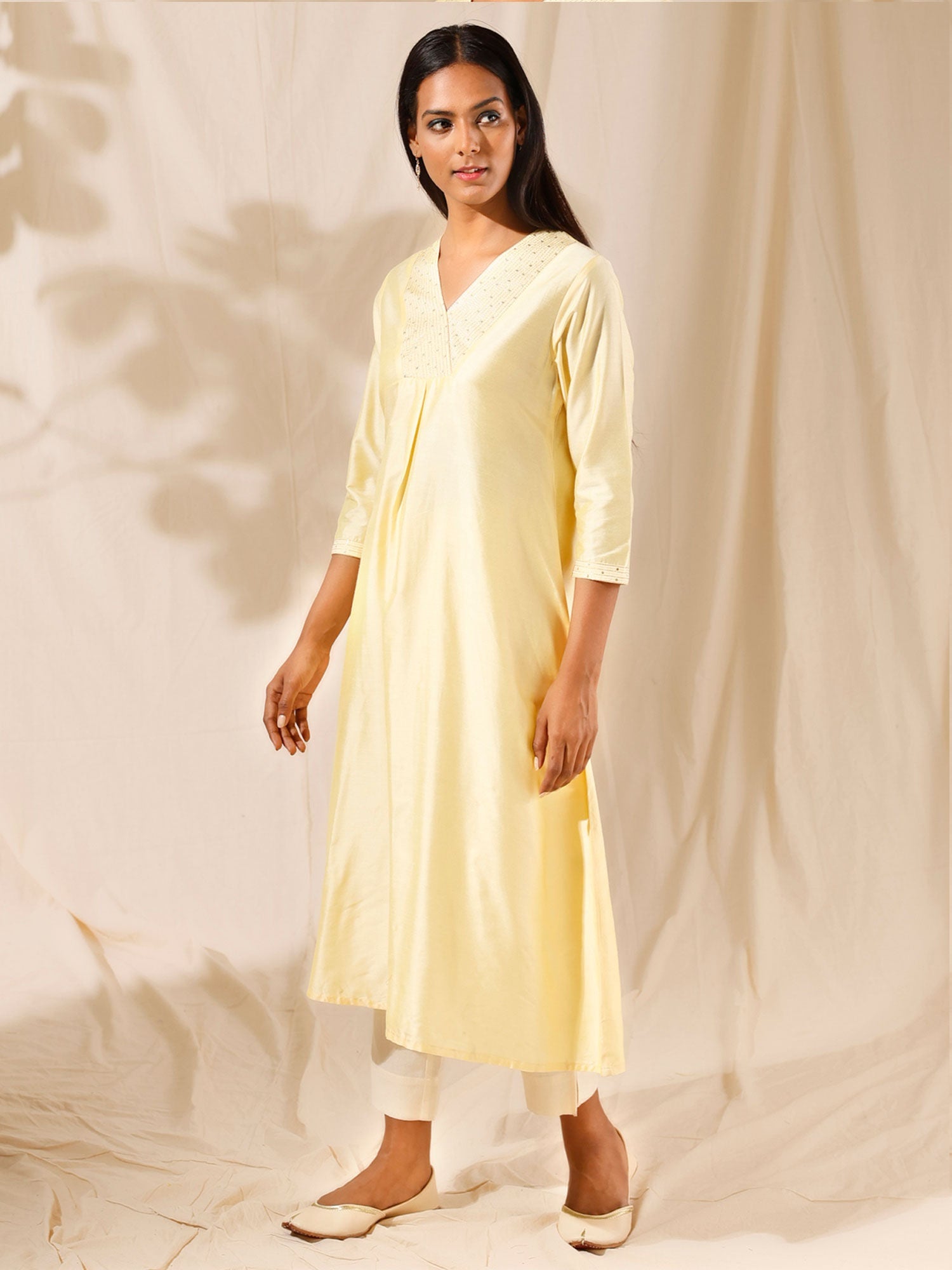 Likha Off White Sequinned V-Neck Kurta LIKKUR33
