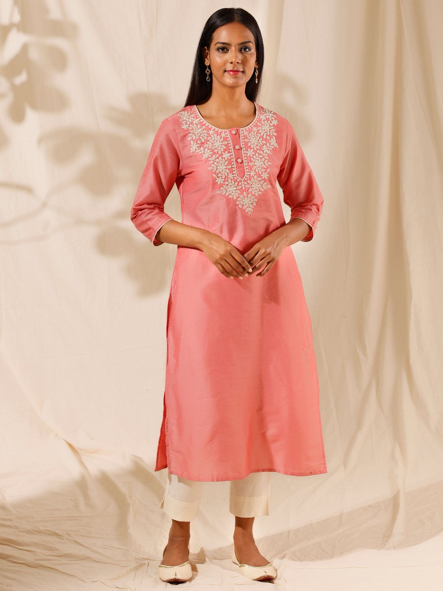 Likha Pink Kurta with Embroidery around Placket LIKKUR25 - M