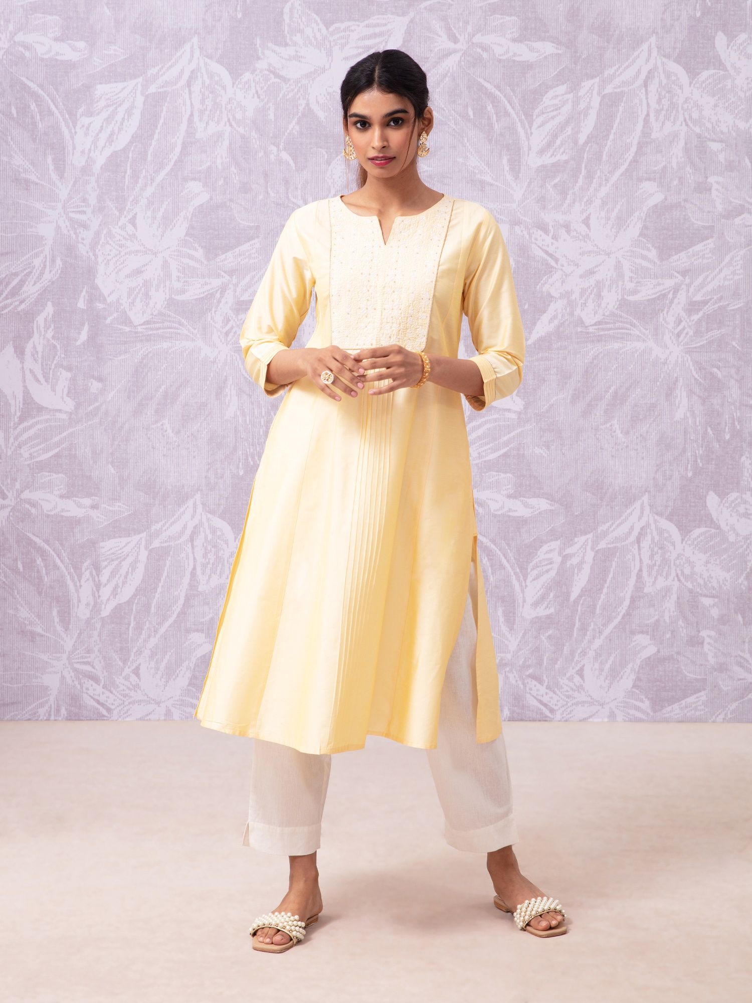 Likha Shaan-e-Avadh Yellow Phulkari Embroidery Yoke Kurta LIKKUR122 - M
