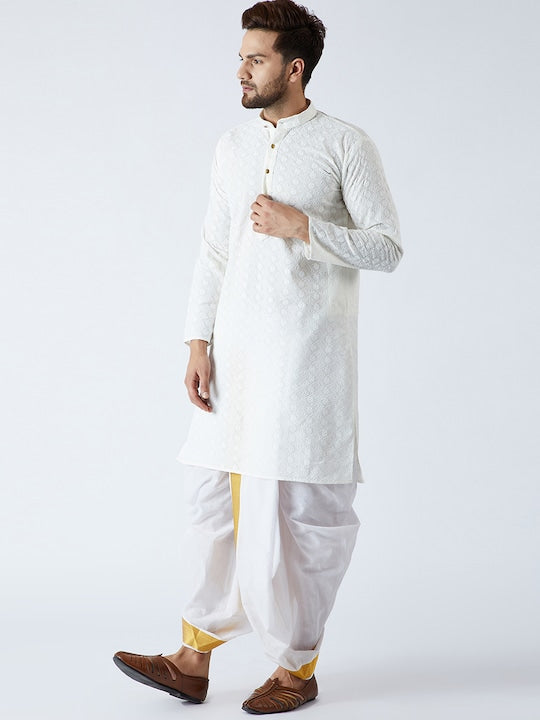 Sojanya Men Cream Coloured & White Embroidered Kurta with Dhoti Pants