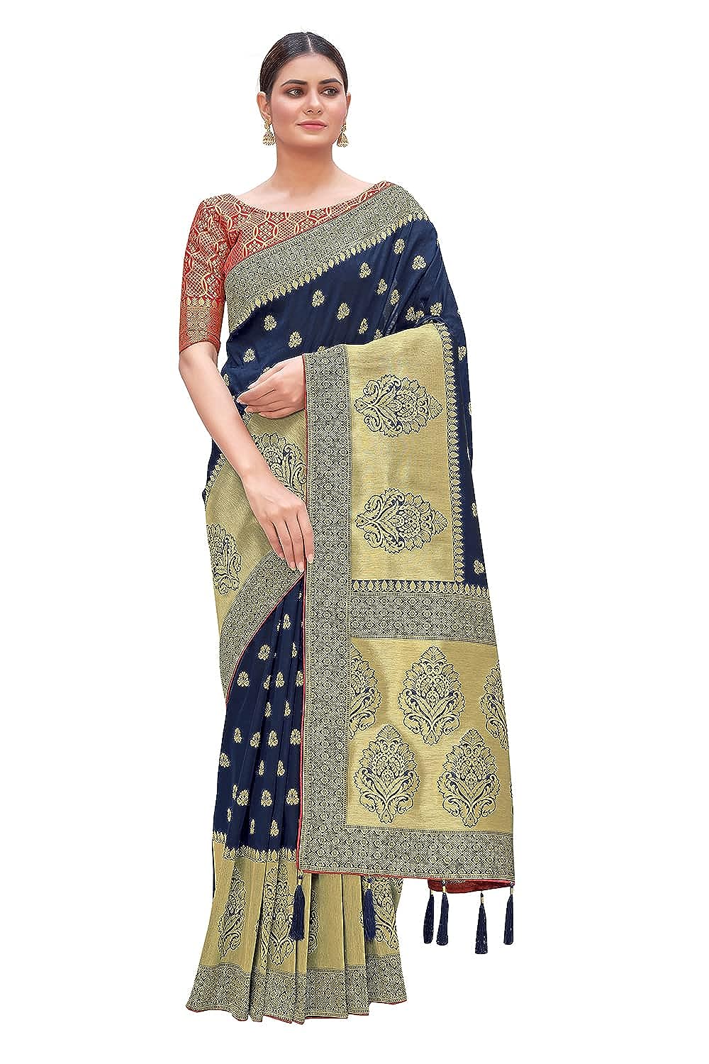 - Blouse work: Zari Woven