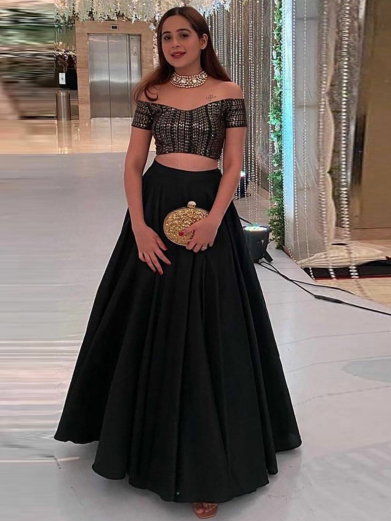 Odette Black Designer Sequin Semi Stitched Lehenga with Blouse & Dupatta (Set of 3)