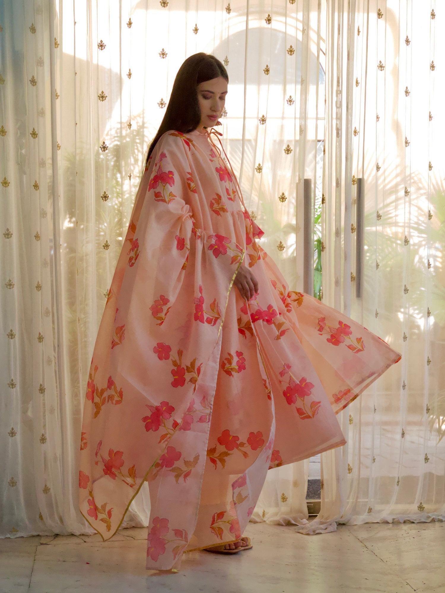 - This peach salwar suit set from ONEWE INDIA is perfect for adding a touch of elegance to your day. The set includes a kurta, pant, and a dupatta, all made from the finest chanderi material.