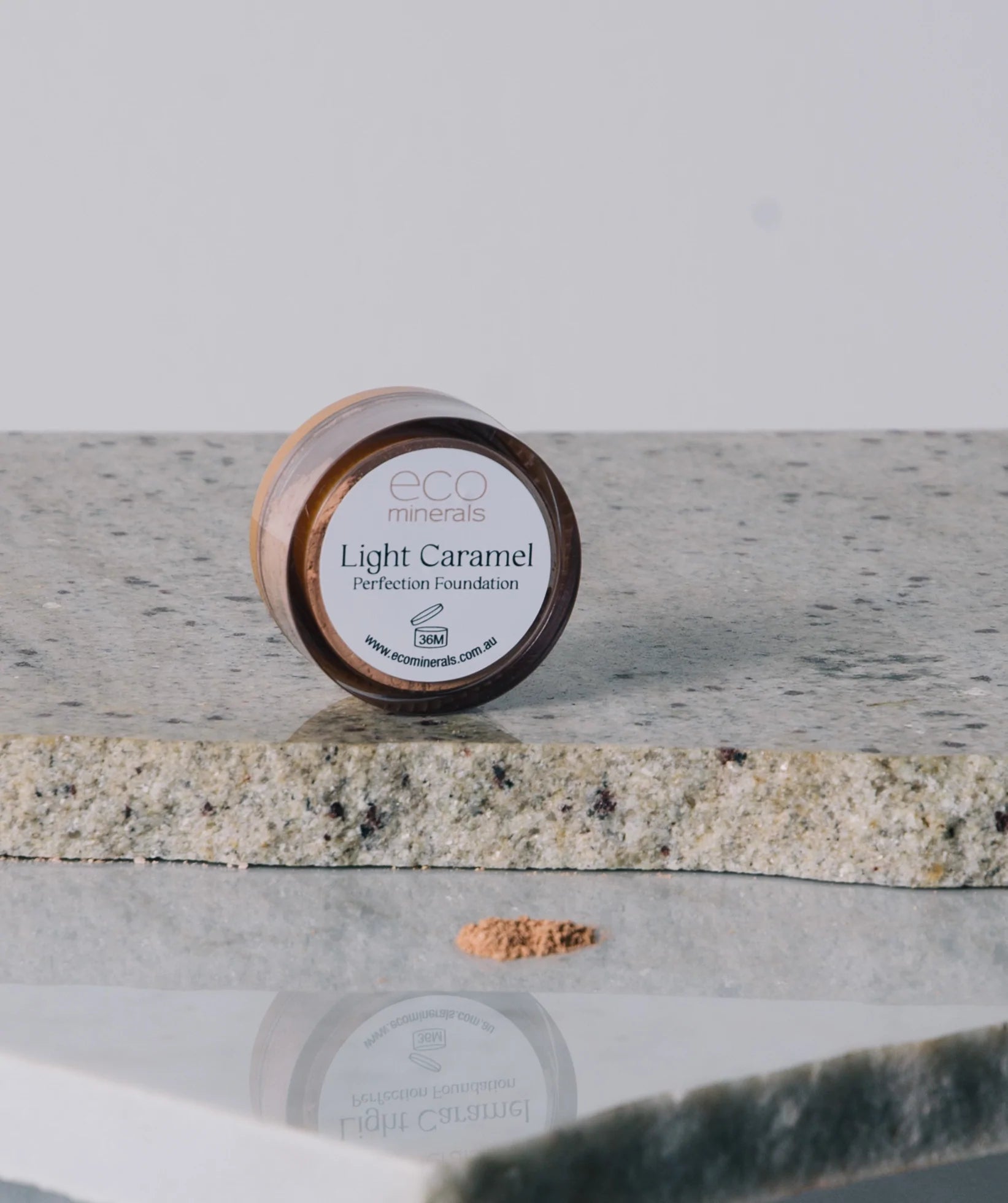 Perfection Foundation is Vegan, 100% pure, cruelty-free and available in eco refill sachets. Natural SPF 25+. Long-wearing and buildable coverage.