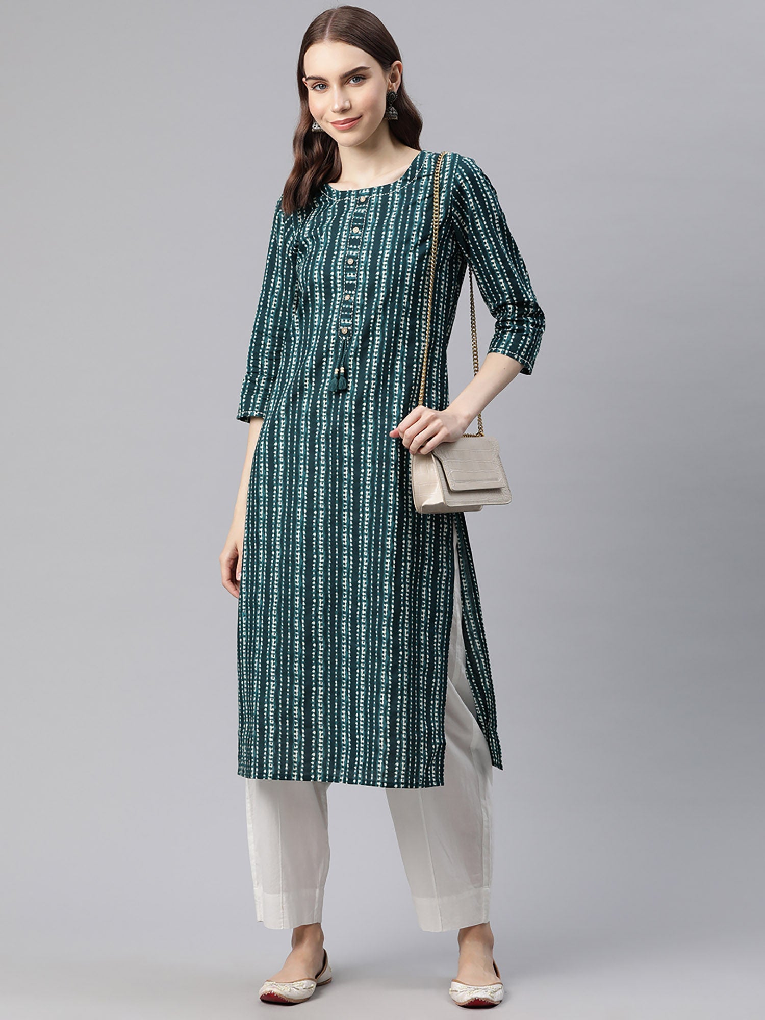 PIROH Womens Cotton Bandhani Print Straight Kurta Teal