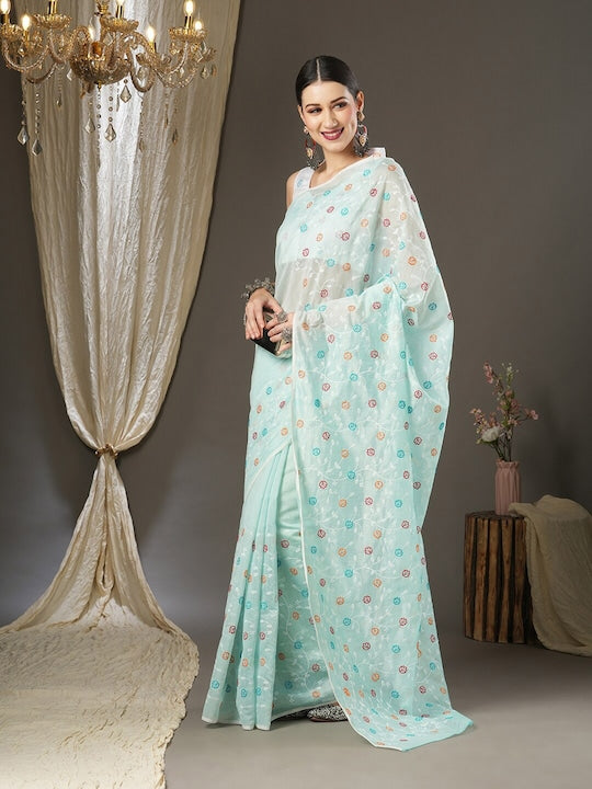 Saree mall Floral Emboidered Festive Sarees