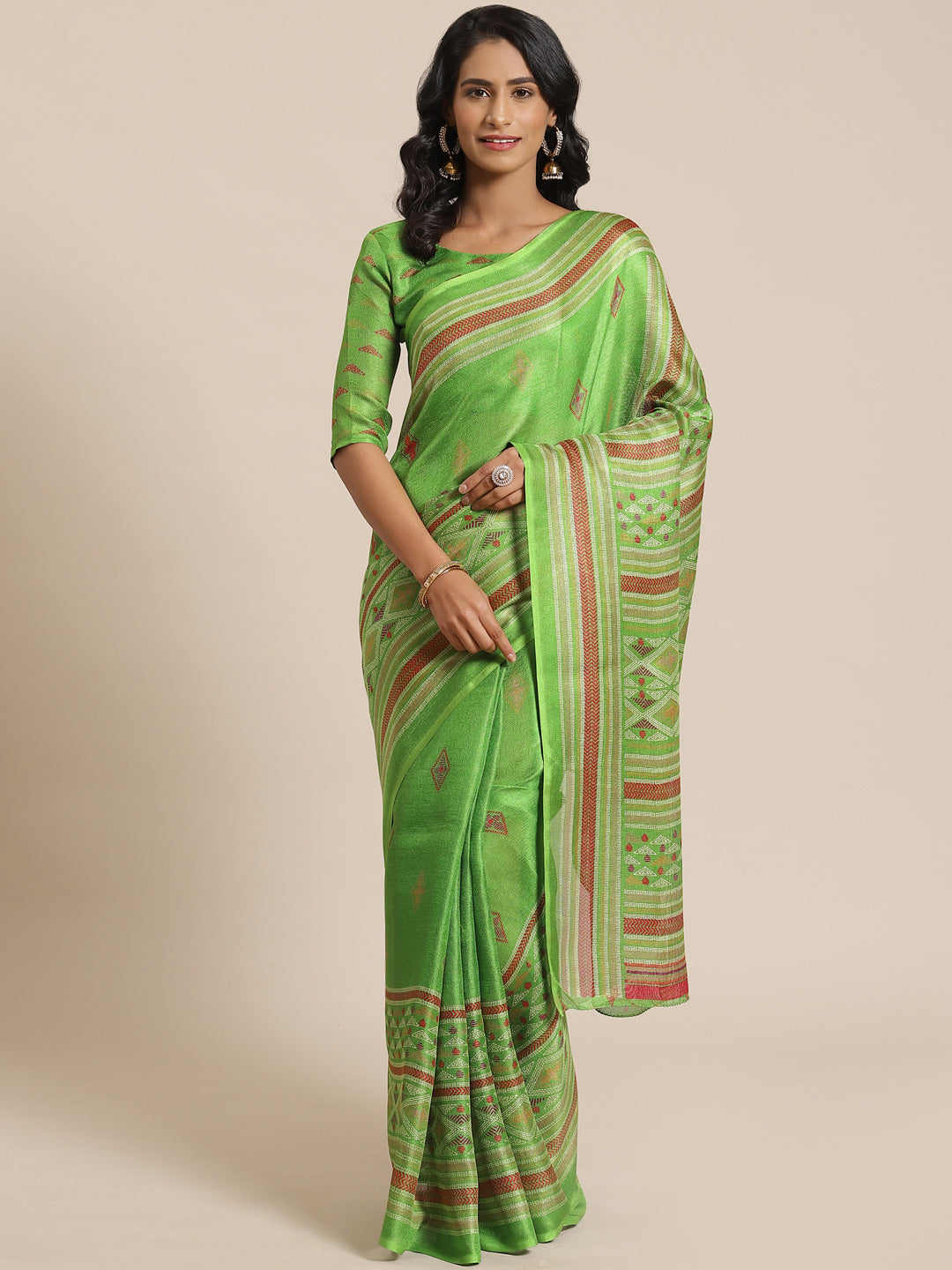 - Look dashing in this feminine festive saree made by Saree mall. Team this green design with a pair of heels and matching jewellery for the perfect elegant look.