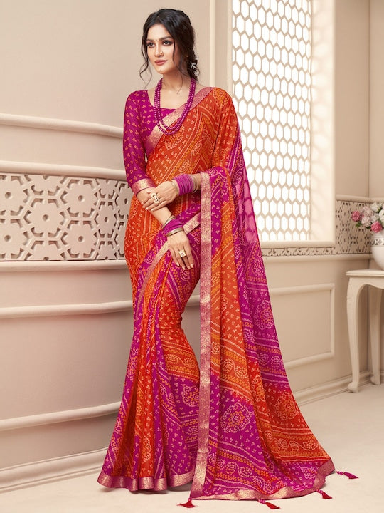 Satrani Bandhani Poly Chiffon Fusion Bandhani Saree