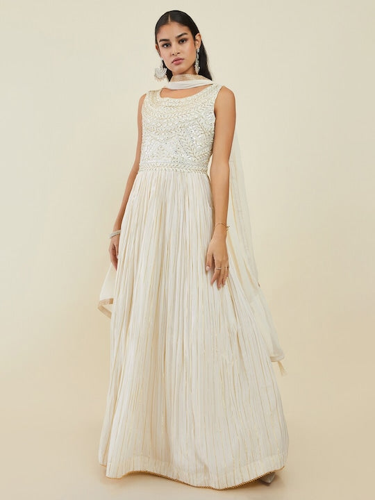 Soch Women Floral Embroidered Mirror Work Pure Cotton Kurta with Trousers & Dupatta