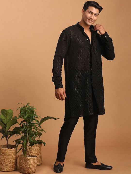 Vastramay Embellished Mandarin Collar Sequinned Georgette Kurta