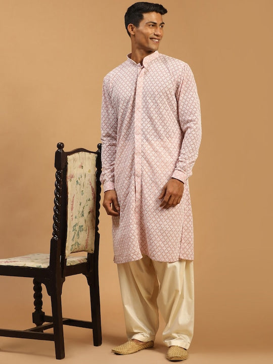 Vastramay Geometric Embroidered Mandarin Collar Chikankari Kurta With Salwar